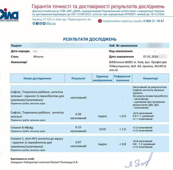 Translation: hepatitis, syphilis negative (07.01.2026)