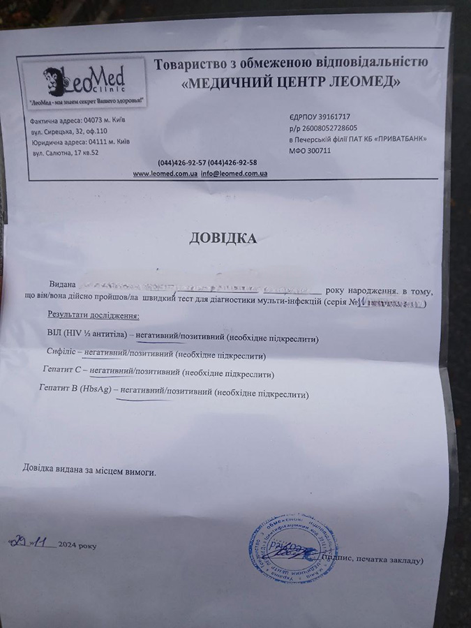 Translation: HIV, hepatitis, syphilis negative (29.11.2024)