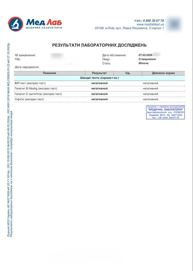 Translation: HIV, hepatitis, syphilis negative (07.03.2026)