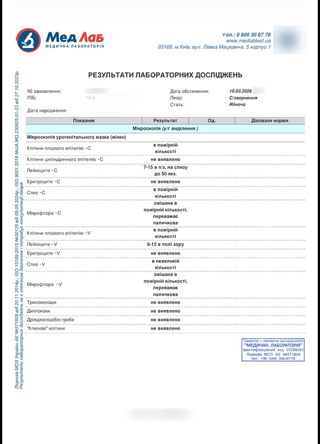 Translation: chlamydia, mycoplasma etc negative (10.03.2026)